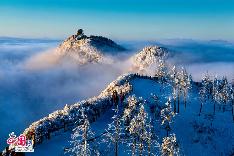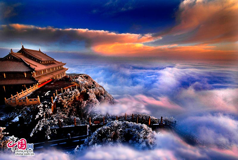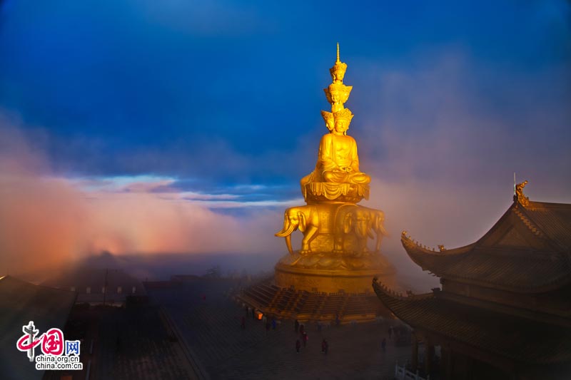 【点睛】“秋日澄清,望见两山相对如蛾眉焉。”---《水经注》,故取名为“峨眉”。峨眉山气势磅礴,青秀苍黛,修长如眉,峨眉山是著名的普贤道场,山上有各具特色的古刹30余处,四季暮鼓晨钟、香烟弥漫、佛音缭绕。其中著名的有报国寺、伏虎寺、清音阁、洪椿坪、仙峰寺、洗象池、万年寺、华藏寺。山中现有文物古迹点164处,藏品近7000件,其中属国家定级保护的有850多件。